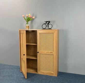 Fechadura de madeira, porta dupla camada de rattan estilo superfície de madeira armário de vidro
