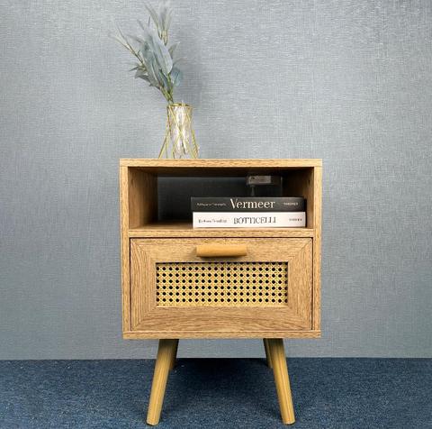 Armário de rattan com tomada, estrutura de superfície em rattan, multifuncional, armário de cabeceira